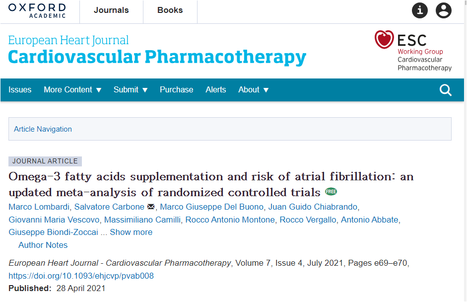 많은 분들이 일반적으로 용량을 지키면 오메가3가 건강에 도움을 준다는 걸로 알고 오메가3를 정기적으로 먹어왔을텐데요. 이전에도 오메가3가 심혈관 보호 효과가 없다는 연구결과는 여러번 나왔으나 뿐만아니라 21년도에 유럽 심장학회 저널에 연구결과에 심방세동을 악화시킨다는 연구결과까지 나오면서 논란이 되었습니다.
