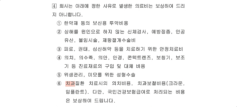 약관에 명시된 임플란트, 치과 보철비용 등이 그렇지요. 대표적으로 실비 청구가 안되는 급여 항목은 다음과 같습니다.
